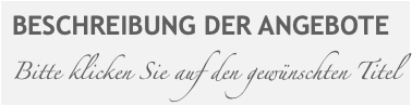 Auch ausserhalb der Kurszeiten möglich (Sonntagabend...), fragen Sie einfach an, ich freue mich Sie persönlich zu beraten.